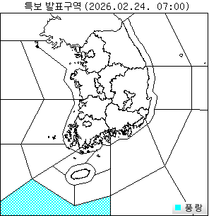 ㆍ 02월 24일 오전(06시~12시) : 서해남부남쪽안쪽먼바다, 서해남부남쪽바깥먼바다, 남해서부서쪽먼바다, 남해서부동쪽먼바다, 제주도앞바다, 제주도남동쪽안쪽먼바다, 제주도남서쪽안쪽먼바다